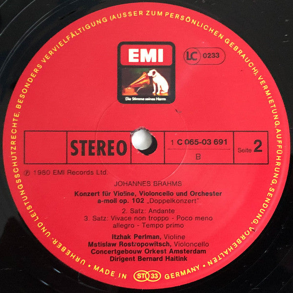 Johannes Brahms — Itzhak Perlman, Mstislav Rostropovich - Bernard Haitink, Concertgebouworkest