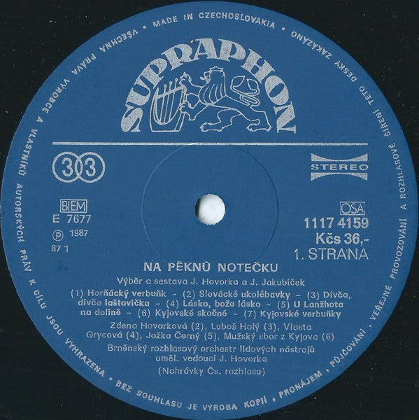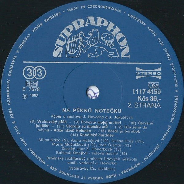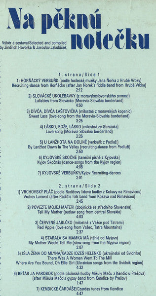 A1. Horňácký Verbuňk 2:12 A2. Slovácké Ukolébavky 4:50 A3. Dívča, Dívča Laštovička 3:25 A4. Lásko, Bože, Lásko 2:26 A5. U Lanžhota Na Dolině 2:50 A6. Kyjovské Skočné 4:08 A7. Kyjovské Verbuňky 2:01 B1. Vrchovský Pláč 3:45 B2. Povezte Mojej Materi 4:03 B3. Červené Jablčko 2:37 B4. Starala Sa Mamka Má 2:07 B5. Išla Žena Do Mlýna 4:32 B6. Beťár Ja Parobok 1:47 B7. Kendické Čardáše 4:47