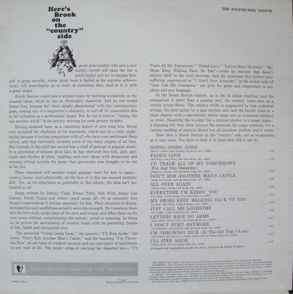 A1. Going Going Gone 2:45 A2. Faded Love 1:59 A3. I'd Trade All Of My Tomorrows 2:45 A4. Don't Rob Another Man's Castle 2:40 A5. All Over Again 2:33 A6. Everytime I'm Kissin' You 2:19 B1. My Shoes Keep Walkin' Back To You 2:26 B2. Just Call Me Lonesome 3:23 B3. Letters Have No Arms 2:17 B4. I Don't Hurt Anymore 2:34 B5. I'm Throwing Rice (At The Girl I Love) 2:48 B6. I'll Step Aside 2:53