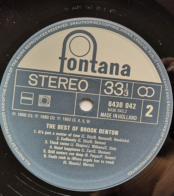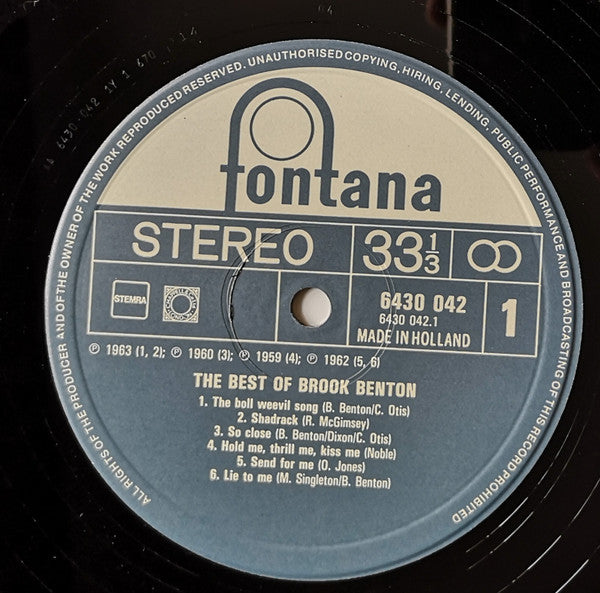 A1. The Boll Weevil Song A2. Shadrack A3. So Close A4. Hold Me, Thrill Me, Kiss Me A5. Send For Me A6. Lie To Me B1. It's Just A Matter Of Time B2. Endlessly B3. Think Twice B4. Hotel Happiness B5. Still Waters Run Deep B6. Fools Rush In