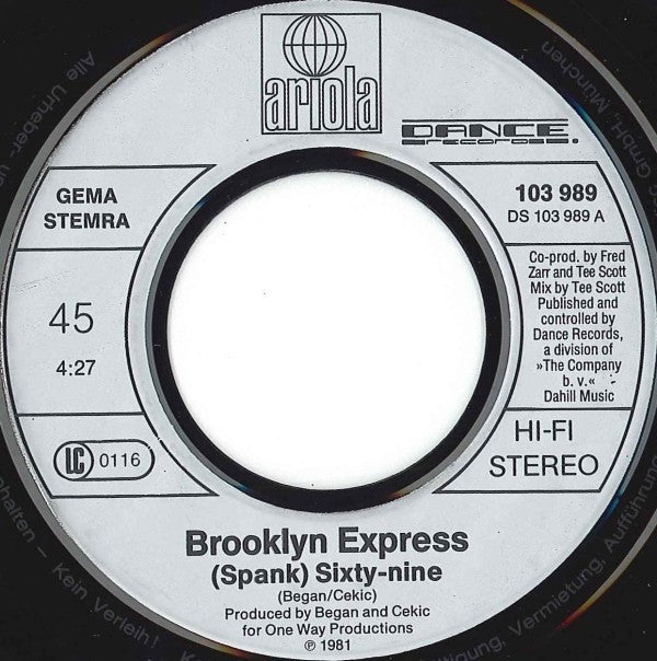Record Company Ariola Eurodisc GmbH Produced For One Way Productions (4) Published By Dance Records Published By Dahill Music Pressed By Sonopress