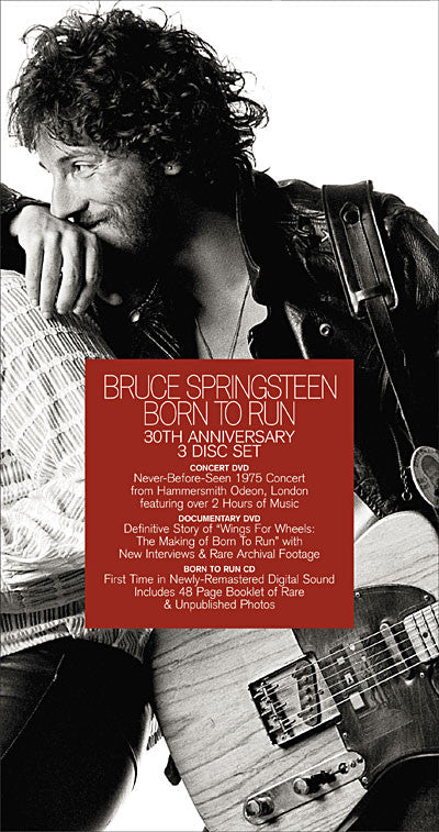 . Bruce Springsteen & The E Street Band: Hammersmith Odeon, London 1975 (2:09:37) DVD1-1. Thunder Road DVD1-2. Tenth Avenue Freeze-Out DVD1-3. Spirit In The Night DVD1-4. Lost In The Flood DVD1-5. She's The One DVD1-6. Born To Run DVD1-7. The E Street Shuffle DVD1-8. It's Hard To Be A Saint In The City DVD1-9. Backstreets DVD1-10. Kitty's Back DVD1-11. Jungleland DVD1-12. Rosalita (Come Out Tonight) DVD1-13. 4th Of July, Asbury Park (Sandy) DVD1-14. Detroit Medley DVD1-15. For You DVD1-16. Quarter To Three . Wings For Wheels: The Making Of Born To Run . Chapters: (1:27:05) DVD2-1. The Journey DVD2-2. Third Album Pressure DVD2-3. "Born To Run" DVD2-4. A New Band DVD2-5. The Studio DVD2-6. The Mix DVD2-7. The Record Release DVD2-8. The Hype DVD2-9. End Of The Journey DVD2-10. Credits . Bonus Feature: Live At The Ahmanson Theater, Los Angeles, 1973 (21:57) DVD2-11. Spirit In The Night DVD2-12. Wild Billy's Circus Story DVD2-13. Thundercrack DVD2-14. Credits . Born To Run CD-1. Thunder Road 4:50CD-2. Tenth Avenue Freeze-Out 3:12CD-3. Night 3:02CD-4. Backstreets 6:32CD-5. Born To Run 4:30CD-6. She's The One 4:31CD-7. Meeting Across The River 3:19CD-8. Jungleland 9:35
