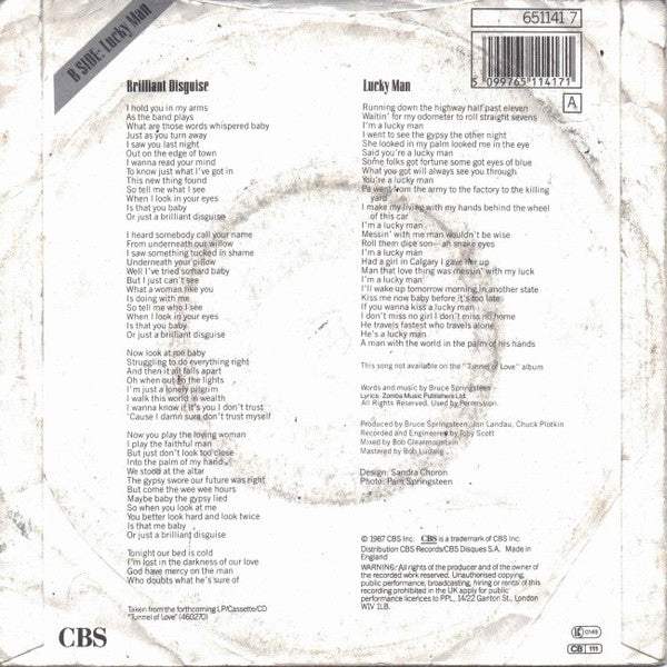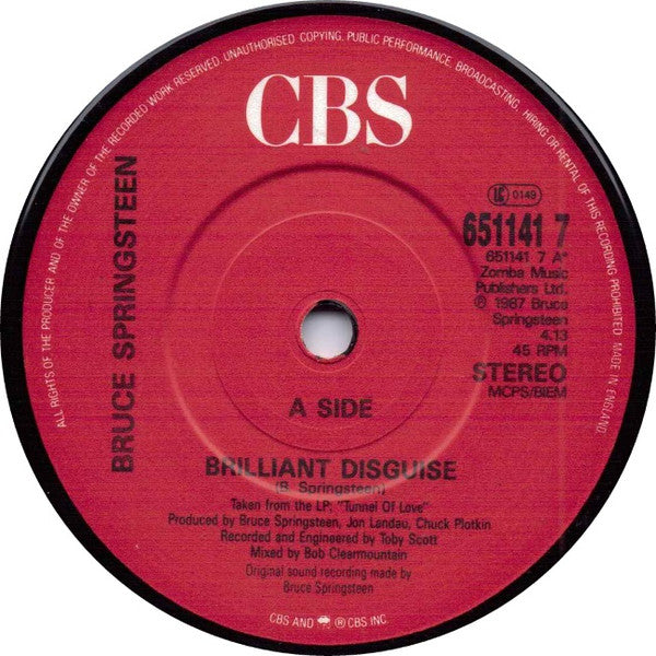 2nd pressing with thin matte sleeve and "short" thumb cut top opening. The statement "Taken from the LP: “Tunnel Of Love" has been removed on the b-side label. The 1st pressing is here: [r12378422 Made in England