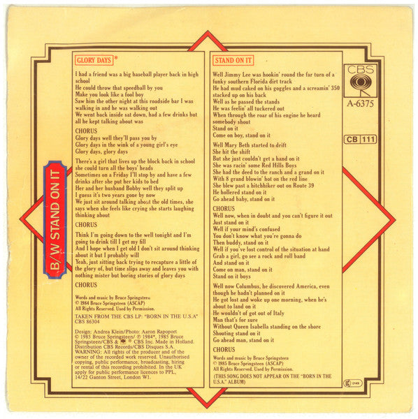 Bruce Springsteen - Glory Days (7", Single, RP)