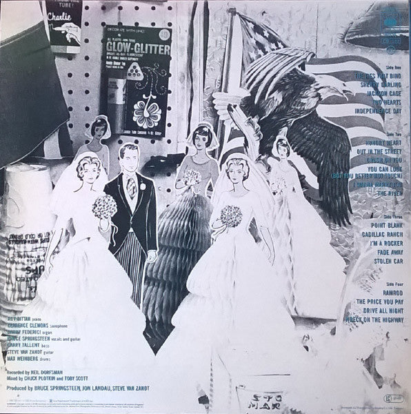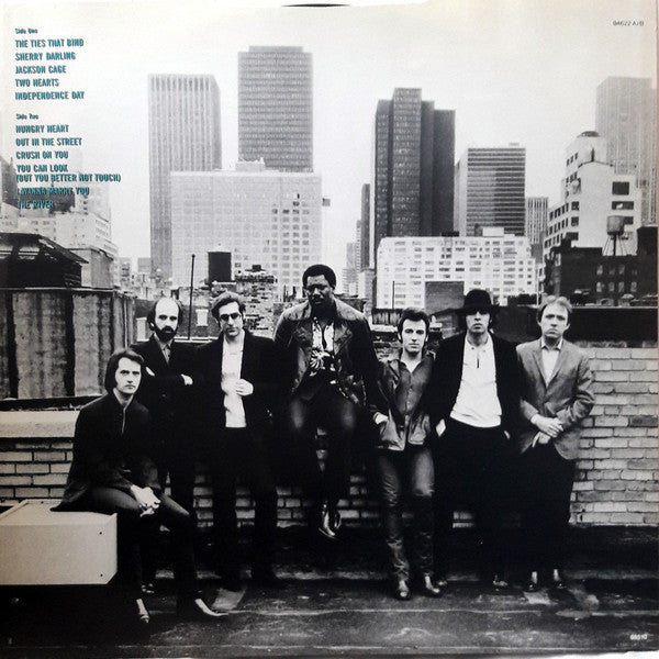 Came with 4 pages thick printed insert with lyrics and credits All text on the back cover is printed in blue in this version (including CBS logo and price codes). No barcode. Special Thanks to Neil Dorfsman and Chuck Plotkin On back cover : © 1980 CBSInc. / ℗ 1980 Bruce Springsteen Shorepak by Shorewood Packaging Co. Ltd., England. On insert : [All songs © 1980 Bruce Springsteen [except A1, A5, B2, B6, C3, C5, D2 © 1979 Bruce Springsteen On labels : ℗ 1980 Bruce Springsteen Made in Holland.