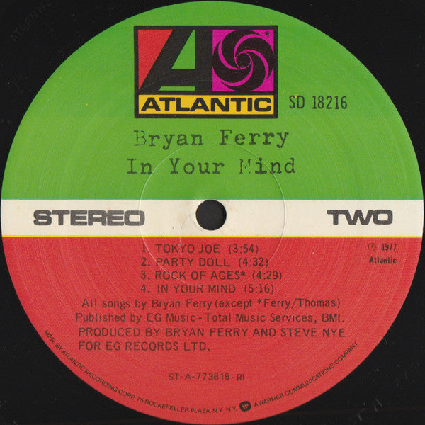 Manufactured By Atlantic Recording Corporation Produced For E.G. Records Ltd. Phonographic Copyright (p) Atlantic Recording Corporation Copyright (c) Atlantic Recording Corporation Published By E.G. Music Published By Total Music Services Designed At C.C.S. Recorded At Air Studios Mastered At Atlantic Studios Pressed By PRC Recording Company, Richmond, IN