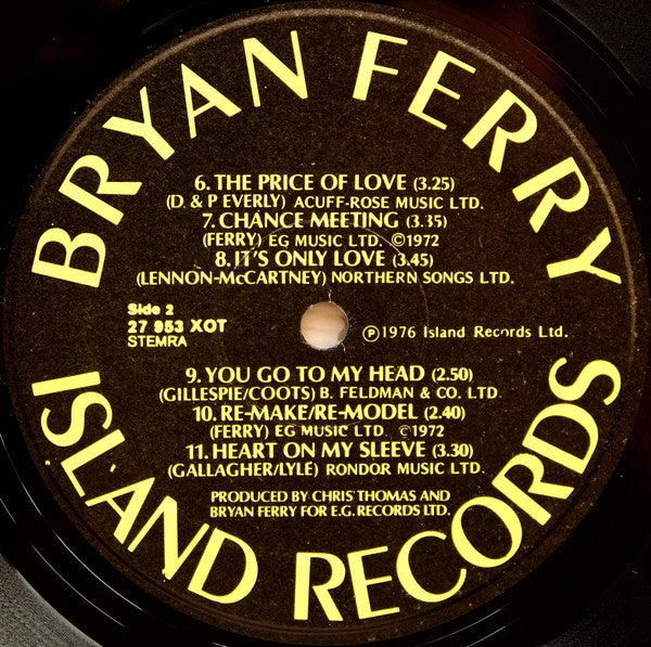Recorded At Air Studios Recorded At Island Studios Produced For E.G. Records Ltd. Record Company Ariola Eurodisc Benelux B.V. Phonographic Copyright (p) Island Records Ltd. Copyright (c) E.G. Music Ltd. Published By United Artists Music Ltd. Published By E.G. Music Ltd. Published By Tollie Music Ltd. Published By Acuff Rose Music Ltd. Published By Northern Songs Ltd. Published By B. Feldman & Co. Ltd. Published By Rondor Music Ltd. Lacquer Cut At Bovema / EMI Studios Lacquer Cut At Bovema / EMI Studios