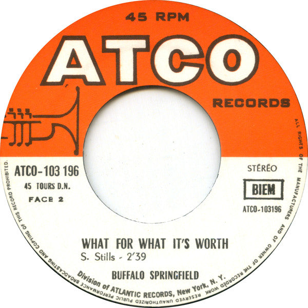 B-side entitled What For What It's Worth on both sleeve and disc.