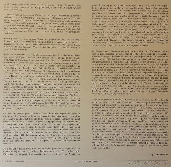 . Concerto Pour Clarinette Et Orchestre En Fa Mineur N°1 Op.73 . Concerto Pour Basson Et Orchestre En Fa Majeur Op.75 . Concertino Pour Cor Et Orchestre En Mi Mineur Op.45