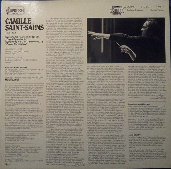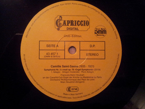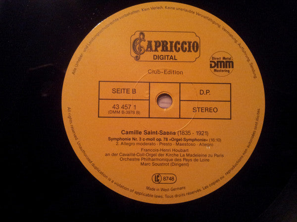 Composer is credited as "Camille Saint-Säens" on front sleeve, as "Camille Saint-Saëns" on rear sleeve and as "Camille Saint-Saens" on spine and center labels.