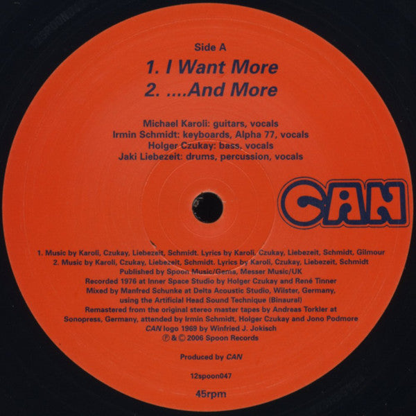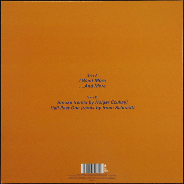 A1. I Want More 3:30 A2. ...And More 2:43 B1. Smoke (Remix By Holger Czukay) 3:15 B2. Half Past One (Remix By Irmin Schmidt) 4:31