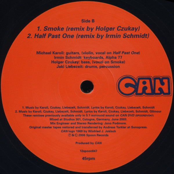 B side remixes were mixed in June 2003 at Studios 301 Cologne, Germany; restored and transferred from the original mastered tapes at Sonopress and were previously available only in 5.1 surround sound on Can DVD.