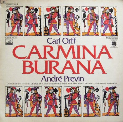 A1. O Fortuna A2. Fortune Plango Vulnera . I. Primo Vere A3. Veris Leta Facies A4. Omnia Sol Temperat A5. Ecce Gratum . Uf Dem Anger A6. Tanz A7. Floret Silva A8. Chramer, Gip Die Varwe Mir A9a. Reie A9b. Swaz Hie Gat Umbe A9c. Chume, Chum Geselle Min A10. Were Diu Werlt Alle Min . Il. In Taberna B11. Estuans Interius B12. Olim Lacus Colueram B13. Ego Sum Abbas B14. In Taberna Quando Sumus . Ill. Cour D´Amours B15. Amor Volat Undique B16. Dies, Nox Et Omnia B17. Stetit Puella B18. Circa Mea Pectora B19. Si Puer Cum Puellula B20. Veni, Veni, Venias B21. In Trutina B22. Tempus Est Iocundum B23. Dulcissimo . Blanziflor Et Helena B24. Ave Formosissima . Fortuna Imperatrix Mundi B25. O Fortuna