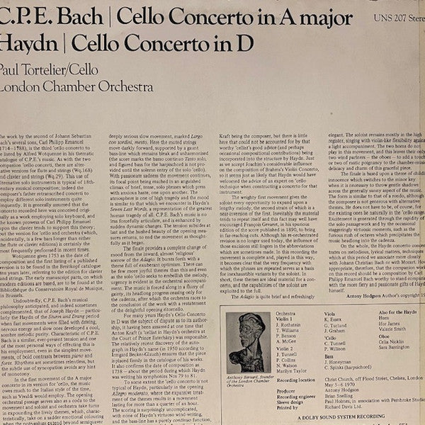 Recorded At Christ Church, Chelsea Printed By Richard Davis Limited Phonographic Copyright (p) Unicorn Records (3) Lacquer Cut At Phonodisc Ltd. Pressed By Phonodisc Ltd.