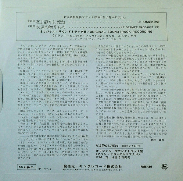Carlo Rustichelli - 友よ静かに死ね = Le Gang (7", Single)