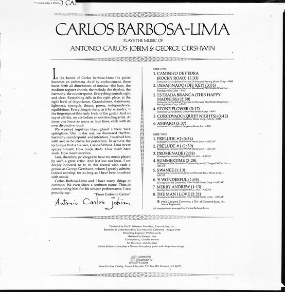 A1. Caminho De Pedra A2. Desafinado A3. Estrada Branca A4. Stone Flower A5. Corcovado A6. Amparo B1. Prelude#2 B2. Prelude#1 B3. Promenade B4. Summertime B5. Swanee B6. 'S Wonderful B7. Merry Andrew B8. The Man I Love