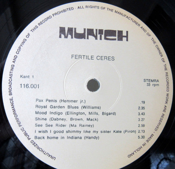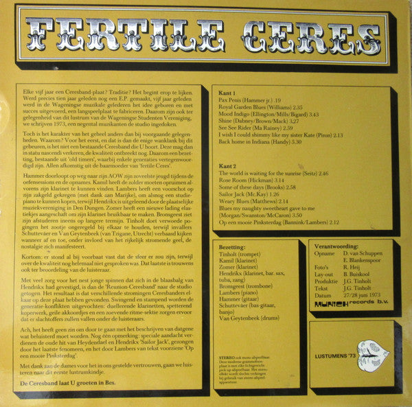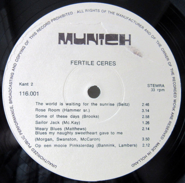 A1. Pax Penis 0:19 A2. Royal Garden Blues 2:35 A3. Mood Indigo 3:43 A4. Shine 3:27 A5. See See Rider 2:59 A6. I Wish I Could Shimmy Like My Sister Kate 2:13 A7. Back Home In Indiana 5:30 B1. The World is Waiting For The Sunrise 2:46 B2. Rose Room 3:14 B3. Some Of These Days 2:58 B4. Sailor Jack 1:26 B5. Weary Blues 2:14 B6. Blues My Naughty Sweetheart Gave To Me 3:50 B7. Op Een Mooie Pinksterdag 2:12