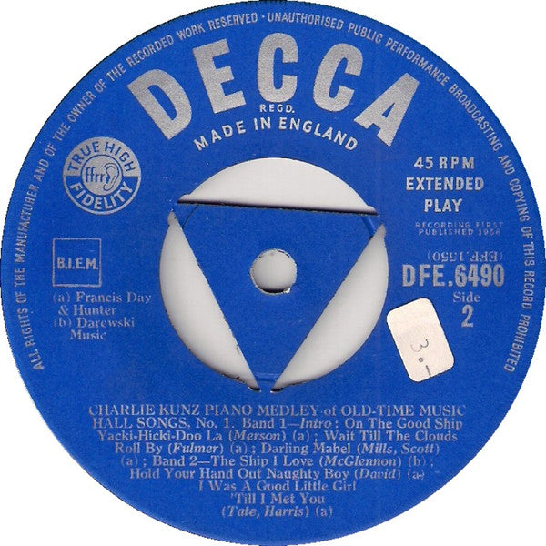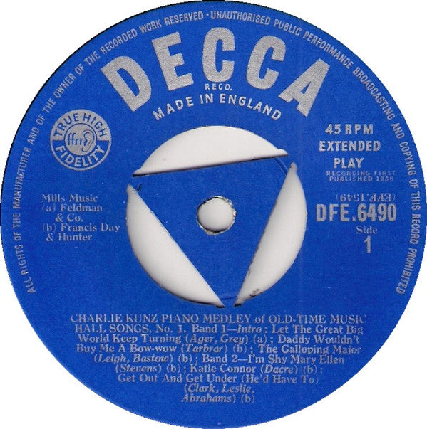Charlie Kunz - Old Time Music Hall Songs No. 1 (7", EP)