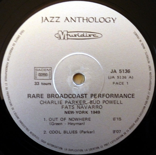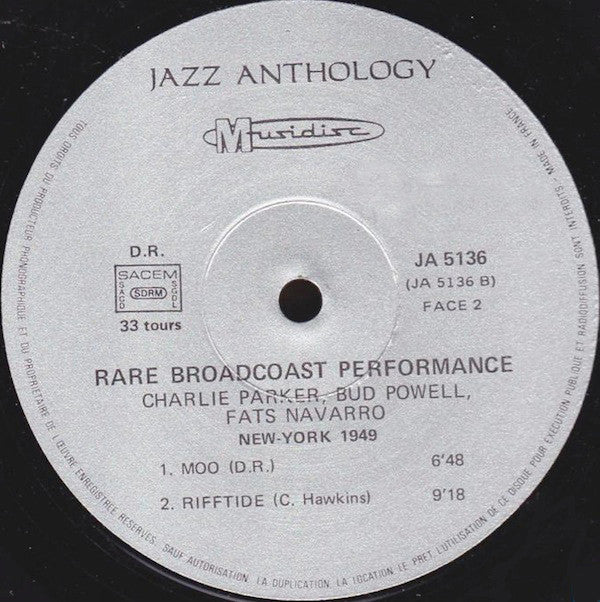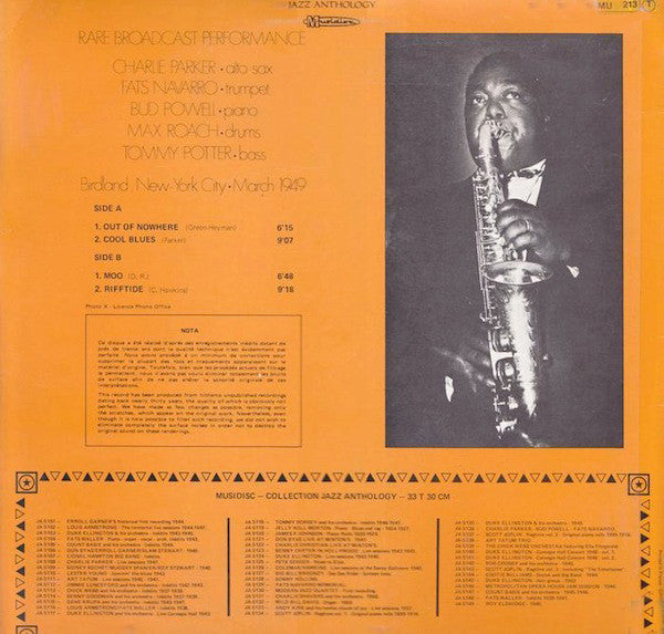 "Recorded at Birdland, New York City In March 1949" [back sleeve