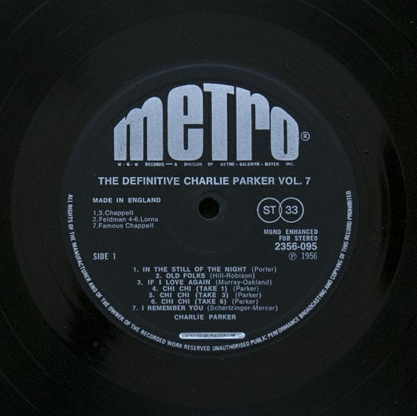 A1. Charlie Parker And His Orchestra - In The Still Of The Night A2. Charlie Parker And His Orchestra - Old Folks A3. Charlie Parker And His Orchestra - If I Love Again A4. The Charlie Parker Quartet - Chi-Chi A5. The Charlie Parker Quartet - Chi-Chi A6. The Charlie Parker Quartet - Chi-Chi A7. The Charlie Parker Quartet - I Remember You B1. The Charlie Parker Quartet - Now's The Time B2. The Charlie Parker Quartet - Confirmation B3. The Charlie Parker Quintet - I Get A Kick Out Of You B4. The Charlie Parker Quintet - I Get A Kick Out Of You B5. The Charlie Parker Quintet - Just One Of Those Things B6. The Charlie Parker Quintet - My Heart Belongs To Daddy B7. The Charlie Parker Quintet - I've Got You Under My Skin