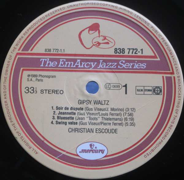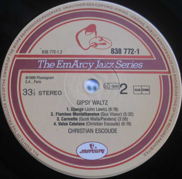 Recorded and digitally mixed at Studio Acousti, Paris, May 22/23 1989