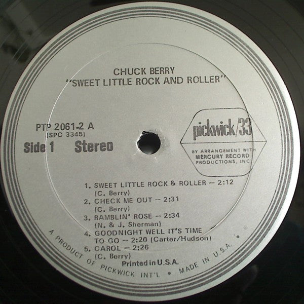 A1. Johnny B. Goode 2:45 A2. Memphis, Tennessee 2:07 A3. Roll Over Beethoven 2:02 A4. Sweet Little Sixteen 2:14 A5. School Days 2:35 B1. Maybelline 2:35 B2. Reelin' & Rocking 4:11 B3. Rock & Roll Music 2:33 B4. Back In The U.S.A. 2:27 C1. Sweet Little Rock & Roller 2:12 C2. Check Me Out 2:31 C3. Ramblin' Rose 2:34 C4. Goodnight Well It's Time To Go 2:20 C5. Carol 2:26 D1. Oh Baby Doll 2:13 D2. Back To Memphis 2:38 D3. It Hurts Me Too 2:58 D4. C.C. Rider 4:21