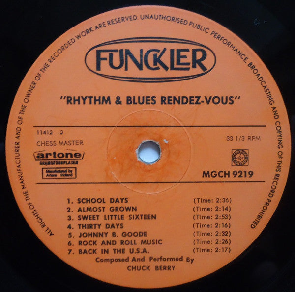 A1. Maybellene 2:14 A2. Roll Over Beethoven 2:18 A3. Oh, Baby Doll 2:27 A4. 'Round And 'Round 2:31 A5. Come On 1:45 A6. Let It Rock 1:38 A7. Reelin' And Rockin' 3:08 B1. School Days 2:36 B2. Almost Grown 2:14 B3. Sweet Little Sixteen 2:53 B4. Thirty Days 2:16 B5. Johnny B. Goode 2:32 B6. Rock And Roll Music 2:26 B7. Back In The U.S.A. 2:17