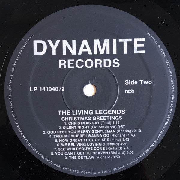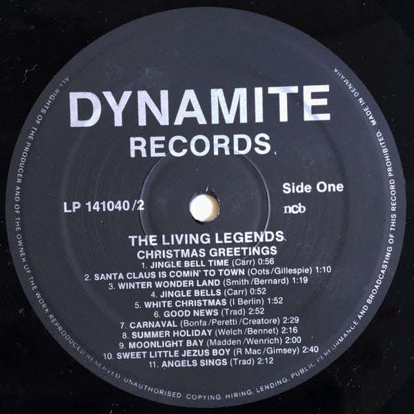 A1. Jingle Bell Time 0:56 A2. Santa Claus Is Comin' To Town 1:10 A3. Winter Wonder Land 1:19 A4. Jingle Bells 0:52 A5. White Christmas 1:52 A6. Good News 2:52 A7. Carnaval 2:29 A8. Summer Holiday 2:16 A9. Moonlight Bay 2:00 A10. Sweet Little Jezus Boy 2:40 A11. Angels Sings 2:12 B1. Christmas Day 1:18 B2. Silent Night 0:57 B3. God Rest You Merry Gentleman 2:10 B4. Take Me Where I Wanna Go 1:48 B5. How Great Though Are 1:42 B6. We Beliving Loving 4:30 B7. See What You've Done 2:46 B8. You Can't Get To Heaven 3:07 B9. The Outlaw 3:59