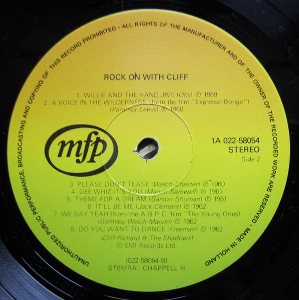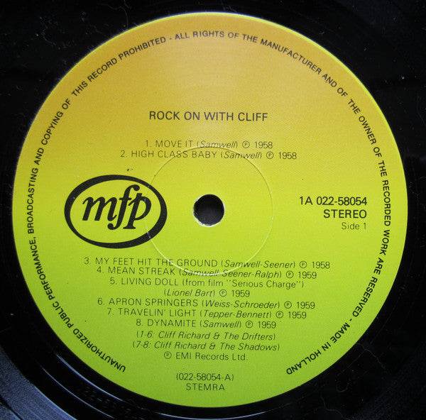 A1. Move It A2. High Class Baby A3. My Feet Hit The Ground A4. Mean Streak A5. Living Doll A6. Apron Strings A7. Travelin' Light A8. Dynamite B1. Willie And The Hand Jive B2. A Voice In The Wilderness B3. Please Don't Tease B4. Gee Whiz It's You B5. Theme For A Dream B6. It'll Be Me B7. We Say Yeah B8. Do You Want To Dance