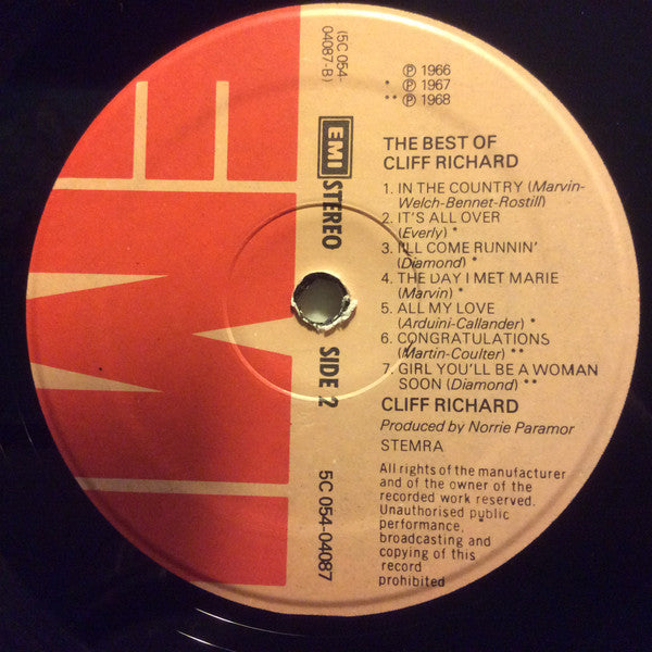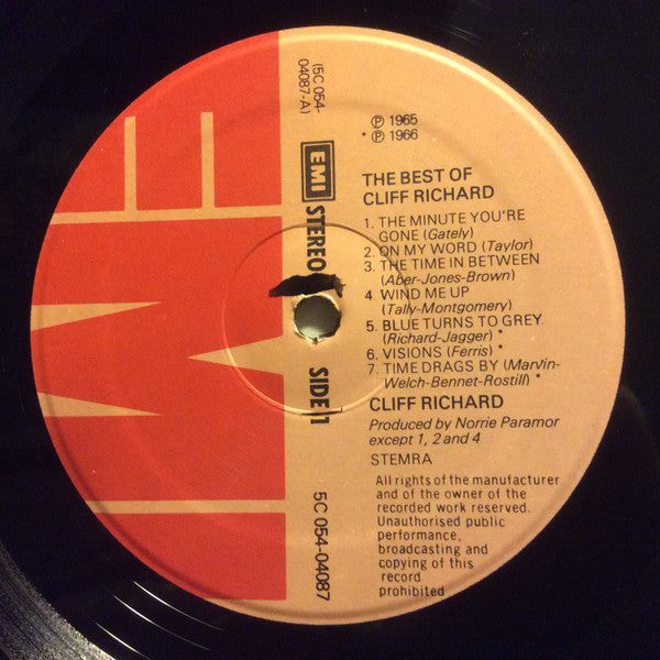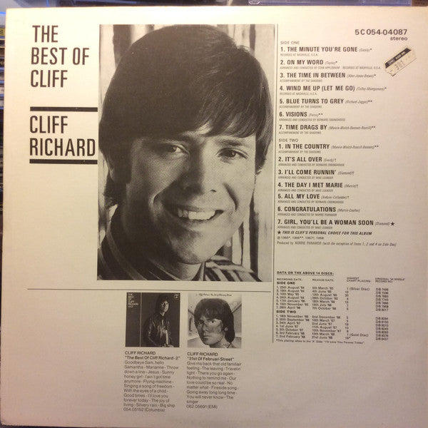 A1. Cliff Richard - The Minute You're Gone A2. Cliff Richard - On My Word A3. Cliff Richard & The Shadows - The Time In Between A4. Cliff Richard - Wind Me Up (Let Me Go) A5. Cliff Richard & The Shadows - Blue Turns To Grey A6. Cliff Richard - Visions A7. Cliff Richard & The Shadows - Time Drags By B1. Cliff Richard & The Shadows - In The Country B2. Cliff Richard - It's All Over B3. Cliff Richard - I'll Come Runnin' B4. Cliff Richard - The Day I Met Marie B5. Cliff Richard - All My Love B6. Cliff Richard - Congratulations B7. Cliff Richard - Girl, You'll Be A Woman Soon