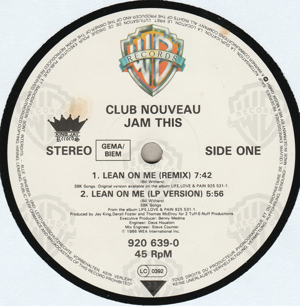 ℗ 1986 WEA International Inc. © 1987 WEA Records Ltd. Made in Germany by WEA Music GMBH.