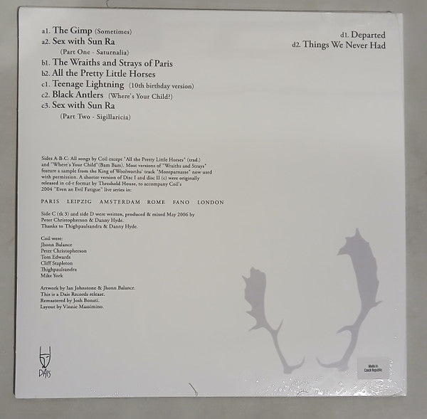 A1. The Gimp (Sometimes) A2. Sex With Sun Ra (Part One - Saturnalia) B1. The Wraiths And Strays Of Paris B2. All The Pretty Little Horses C1. Teenage Lightning (10th Birthday Version) C2. Black Antlers (Where's Your Child?) C3. Sex With Sun Ra (Part Two - Sigillaricia) D1. Departed D2. Things We Never Had