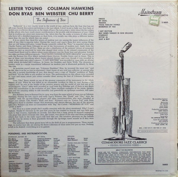 A1. Smack 2:35 A2. My Ideal 3:05 A3. Indiana 5:15 A4. These Foolish Things 2:40 A5. Memories Of You 3:45 B1. I Got Rhythm 3:15 B2. Way Down Yonder In New Orleans 3:01 B3. Stardust 3:53 B4. Sittin' In 2:04 B5. Just A Riff 3:55