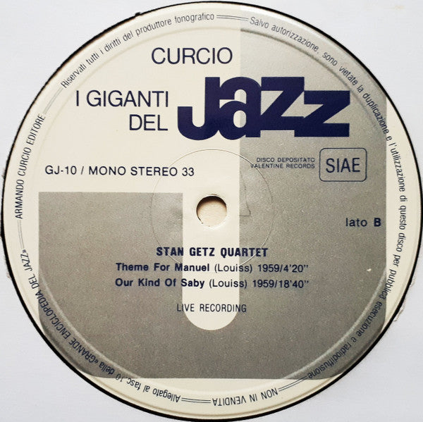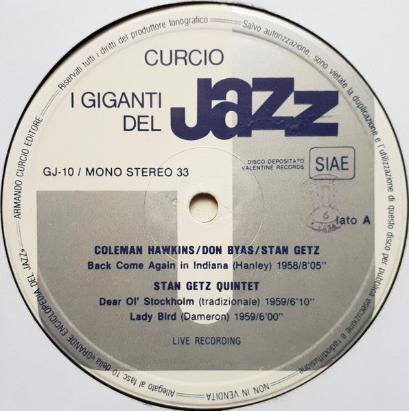 A1. Coleman Hawkins, Don Byas, Stan Getz - Back Come Again In Indiana 8:05 A2. Stan Getz Quintet - Dear Ol' Stockholm 6:10 A3. Stan Getz Quintet - Lady Bird 6:00 B1. Stan Getz Quartet - Theme For Manuel 4:20 B2. Stan Getz Quartet - Our Kind Of Saby 18:40