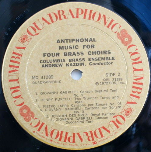 Columbia Brass Ensemble - Antiphonal Music For Four Brass Choirs (LP, Album, Quad)