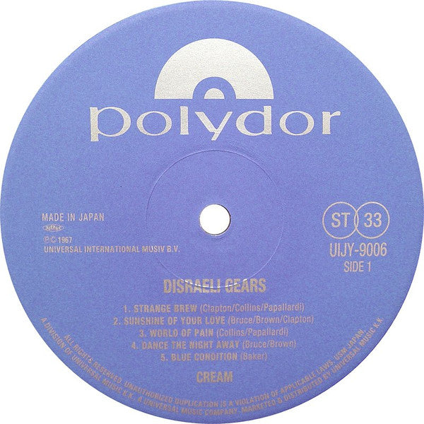 A1. Strange Brew A2. Sunshine Of Your Love A3. World Of Pain A4. Dance The Night Away A5. Blue Condition B1. Tales Of Brave Ulysses B2. Swlabr B3. We're Going Wrong B4. Outside Woman Blues B5. Take It Back B6. Mother's Lament