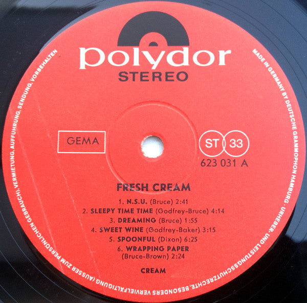 A1. N.S.U. 2:41 A2. Sleepy Time Time 4:14 A3. Dreaming 1:55 A4. Sweet Wine 3:15 A5. Spoonful 6:25 A6. Wrapping Paper 2:24 B1. Cat's Squirrel 2:58 B2. Four Until Late 2:06 B3. The Coffee Song 2:55 B4. Rollin' And Tumblin' 4:41 B5. I'm So Glad 3:55 B6. Toad 5:07