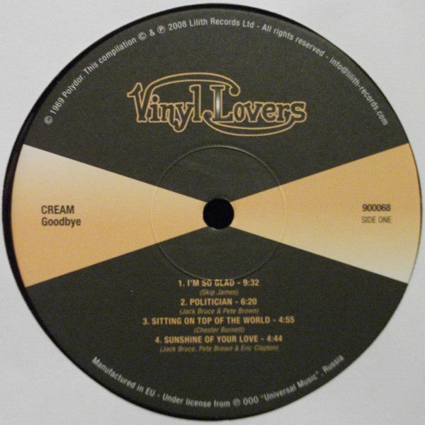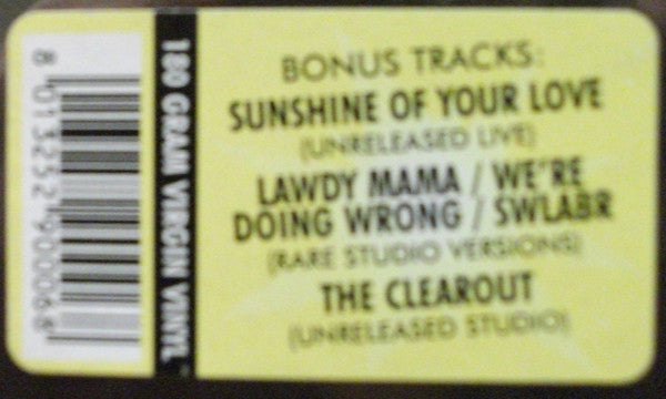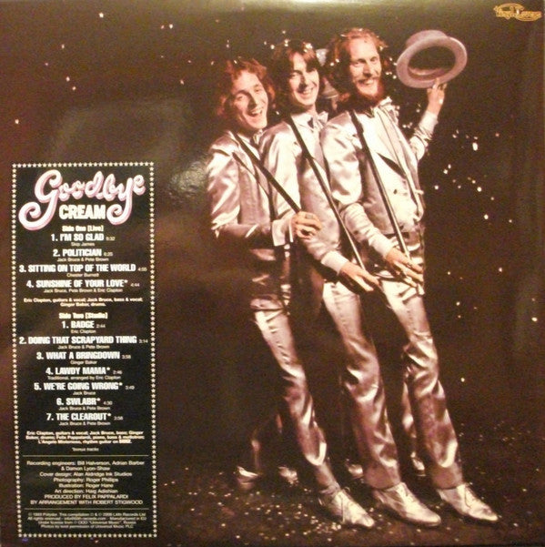A1. I'm So Glad 9:32 A2. Politician 6:20 A3. Sitting On Top Of The World 4:55 A4. Sunshine Of Your Love 4:44 B1. Badge 2:44 B2. Doing That Scrapyard Thing 3:14 B3. What A Bringdown 3:56 B4. Lawdy Mama 2:46 B5. We're Going Wrong 3:49 B6. Swlabr 4:30 B7. The Clearout 3:58