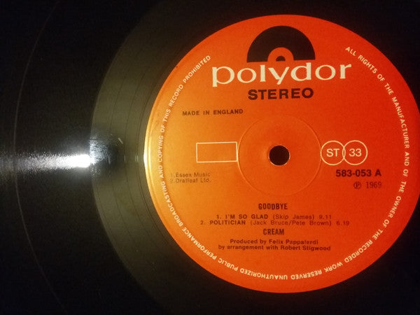"I'm So Glad", "Politician" & "Sitting On Top Of The World" were recorded live in concert.