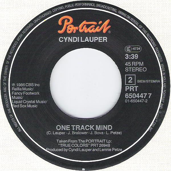 Taken from the Portrait® Lp: "TRUE COLORS" PRT 26948. Cover photo inspired by Man Ray. The song inspired, of course, by Marvin and the children of the world.