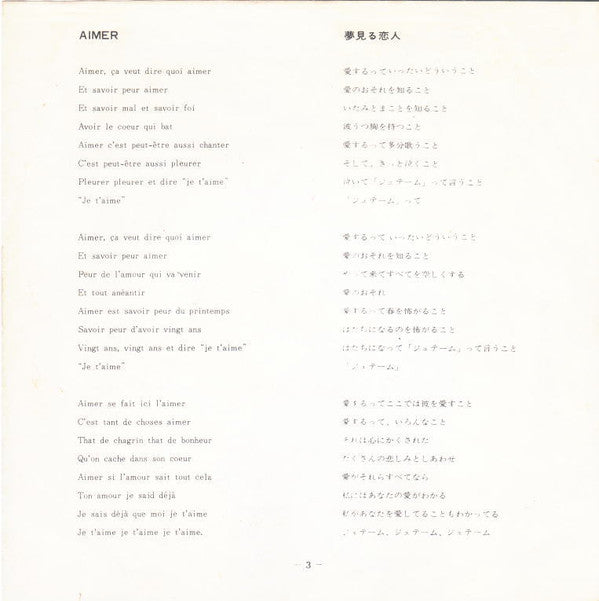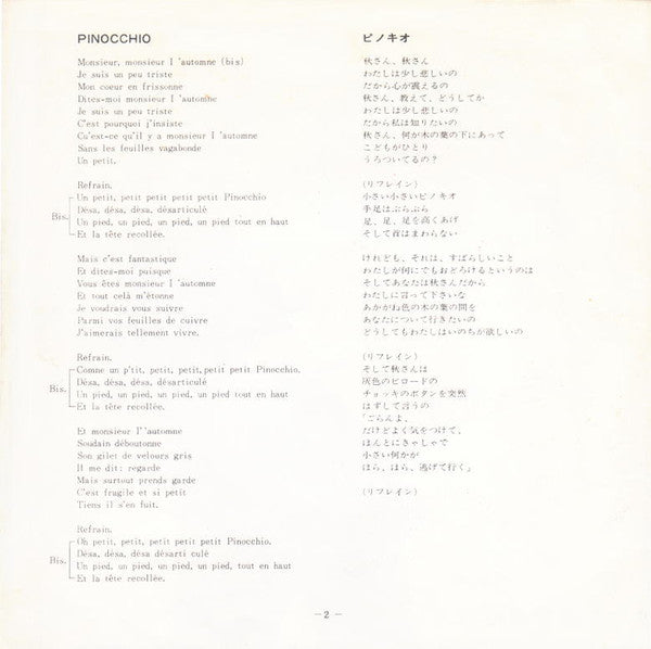 A. ピノキオ = Pinocchio B. 夢見る恋人 = Aimer