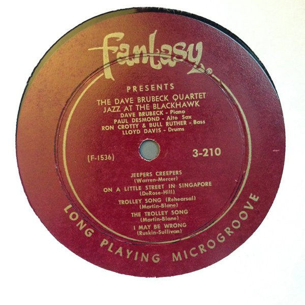 A3 and A4 banded as one track Recorded at the Surf Club, Hollywood, Sept. 1952 (A2, A5) & Feb. 1953 (B1, B3) Recorded at the Blackhawk, San Francisco, Sept. 1953 (A1) Recorded at Bill Bates' home, Los Angeles, Oct. 1953 (A3, B2) Recorded in San Francisco, late 1953 (A4)
