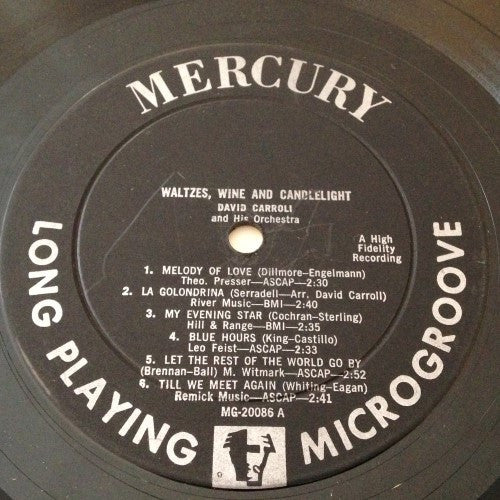 A1. Melody Of Love 2:30 A2. La Golondrina 2:40 A3. My Evening Star 2:35 A4. Blue Hours 2:33 A5. Let The Rest Of The World Go By 2:52 A6. Till We Meet Again 2:41 B1. Tradewinds 2:10 B2. The Blue Scarecrow 2:52 B3. Sugar Loaf 2:12 B4. Tropical 2:16 B5. Safari 2:47 B6. Tambourin Chinois 2:27