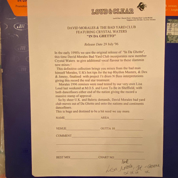 David Morales & The Bad Yard Club Featuring Crystal Waters - In Da Ghetto (2x12", Promo)