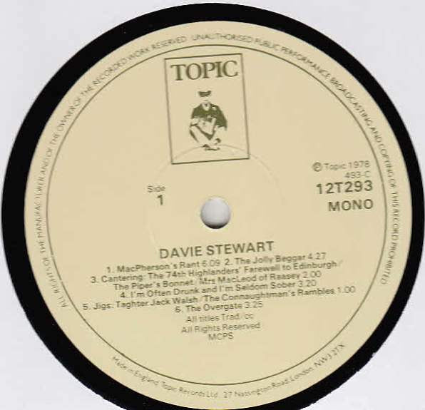 issued with insert containing notes on the life of Davie Stewart. Recorded in Dundee and Edinburghin 1954, 1955 and 1962,. First issued by Topic Records in 1978.