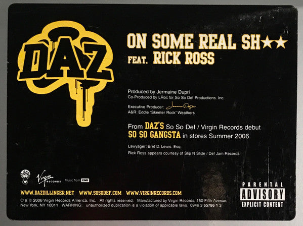 Daz Dillinger Feat. Rick Ross - On Some Real Sh★★ (12", Promo)