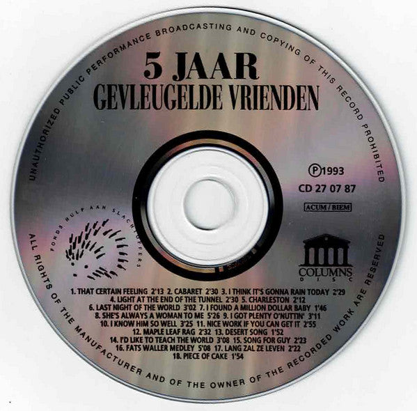 1. That Certain Feeling 2:132. Cabaret 2:303. I Think It's Gonna Rain Today 2:294. Light At The End Of The Tunnel 3:025. Charleston 2:126. Last Night Of The World 3:027. I Found A Million Dollar Baby 1:468. She's Always A Woman To Me 5:269. I Got Plenty O' Nuttin' 3:1110. I Know Him So Well 3:2511. Nice Work If You Can Get It 2:5512. Maple Leaf Rag 2:3213. Desert Song 1:5214. I'd Like To Teach The World 3:0815. Song For Guy 2:2316. Fats Waller Medley 5:0817. Lang Zal Ze Leven 2:2218. Piece Of Cake 1:54