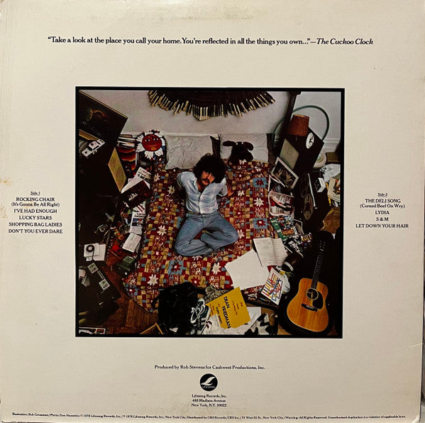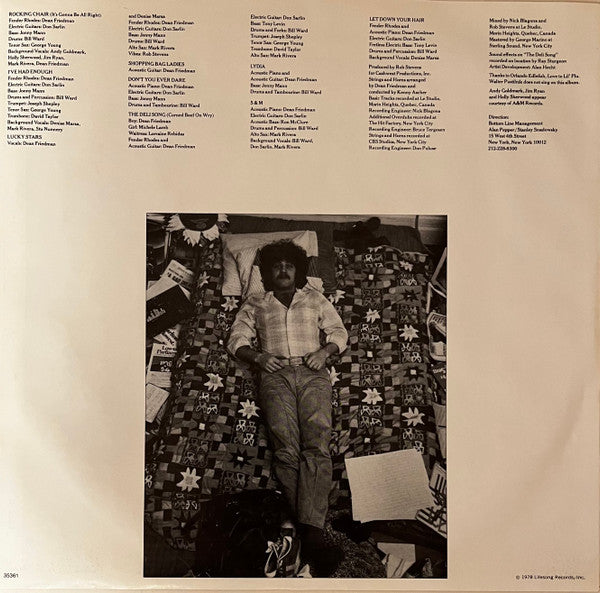 A1. Rocking Chair (It's Gonna Be All Right) 4:34 A2. I've Had Enough 3:26 A3. Lucky Stars 3:56 A4. Shopping Bag Ladies 2:34 A5. Don't You Ever Dare 4:40 B1. The Deli Song (Corned Beef On Wry) 3:08 B2. Lydia 4:46 B3. S & M 3:51 B4. Let Down Your Hair 4:53