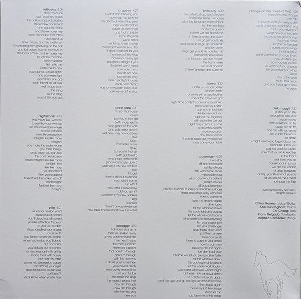 A1. Feiticeira 3:09 A2. Digital Bath 4:15 A3. Elite 4:01 B1. RX Queen 4:27 B2. Street Carp 2:41 B3. Teenager 3:20 C1. Knife Prty 4:49 C2. Korea 3:23 C3. Passenger 6:07 D1. Change (In The House Of Flies) 4:59 D2. Pink Maggit 7:32