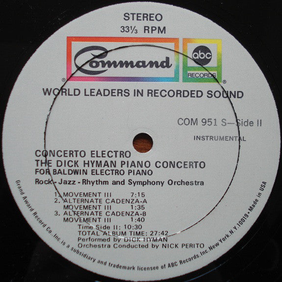 Record Company ABC Records, Inc. Manufactured By Grand Award Record Co., Inc. Published By Eastlake Music, Inc. Recorded At National Recording Studios, New York City Mastered At Longwear Plating